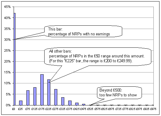 But note - in the above graphs, the "painful peak" occurs at about £250 net income, in other words amounts of about £75. Yet this is about the same as, or even higher than, typical estimates of the costs of supporting a child (except perhaps for better-off people). Since mostly there is only one child, and anyway the state pays over £15 in Child Benefit for a first child, it is very likely that the "painful peak" represents an excessive demand on the NRP, who after all ought to be sharing the cost with the PWC and the state.