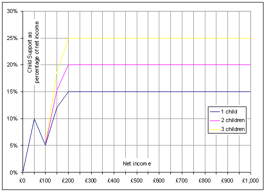 Then up to a net income of about £400 per week there is no difference in liability for any number of children above 1, and up to about £450 there is only a small difference if there are just 2 children. Over 98% of NRPs earn less than £450. There are very few NRPs with more than 1 qualifying child where it make any difference how many children (beyond 1) there are.